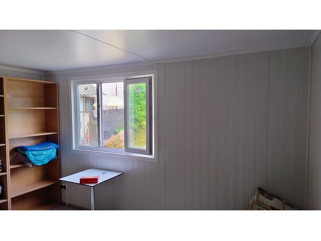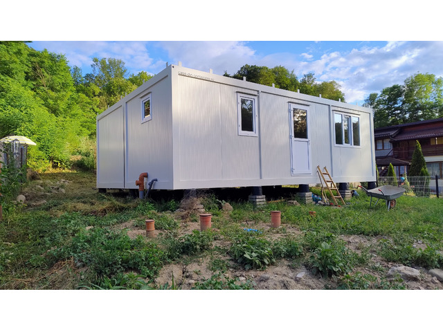 Casa modulara este noua (noiembrie 2024), neutilizata, in garantie, avand o suprafata de 48 mp, fiind pozitionata pe piloni pentru a fi asigurata ventilatia si pentru a se evita condensul.