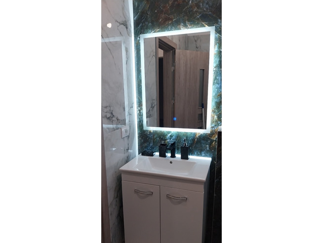 2 Băi Elegante, echipate si mobilate complet, oglinzi moderne cu tuch, iluminare led si dezaburire, cu cada și duș walk-in.